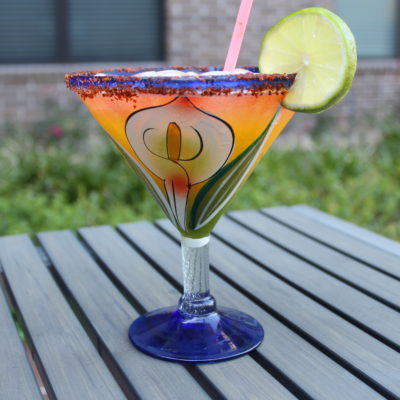 - Squeeze orange juice over margarita and stir.