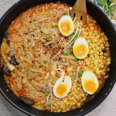 It was probably cold for all of 2 hours in Houston, so that brisk weather had me craving something savory and warm. This was my first attempt at making homemade ramen, and I was pretty impressed with how much easier it is to make than it actually looks. A quick trip to my local Asian Market turned out to be a fun adventure too! I know this is traditionally made with ground pork, but I don’t personally eat a lot of pork, so I swapped it for ground turkey. Go with your protein of choice, tofu is a great alternative, or go meatless altogether!
